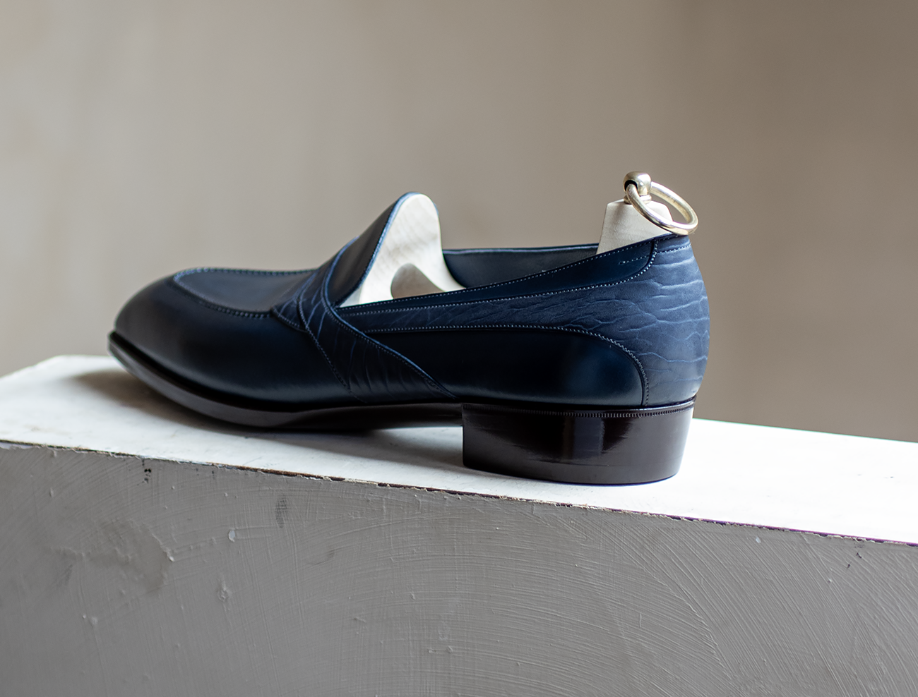 Bespoke TYE Blue Loafers in Calf and Seal.